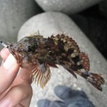 アタリがなくても穴の中でリフトアンドフォールさせていればどこからか寄ってきて食いついてくる。20センチぐらいの根魚だが引きは抜群で本当に楽しい。