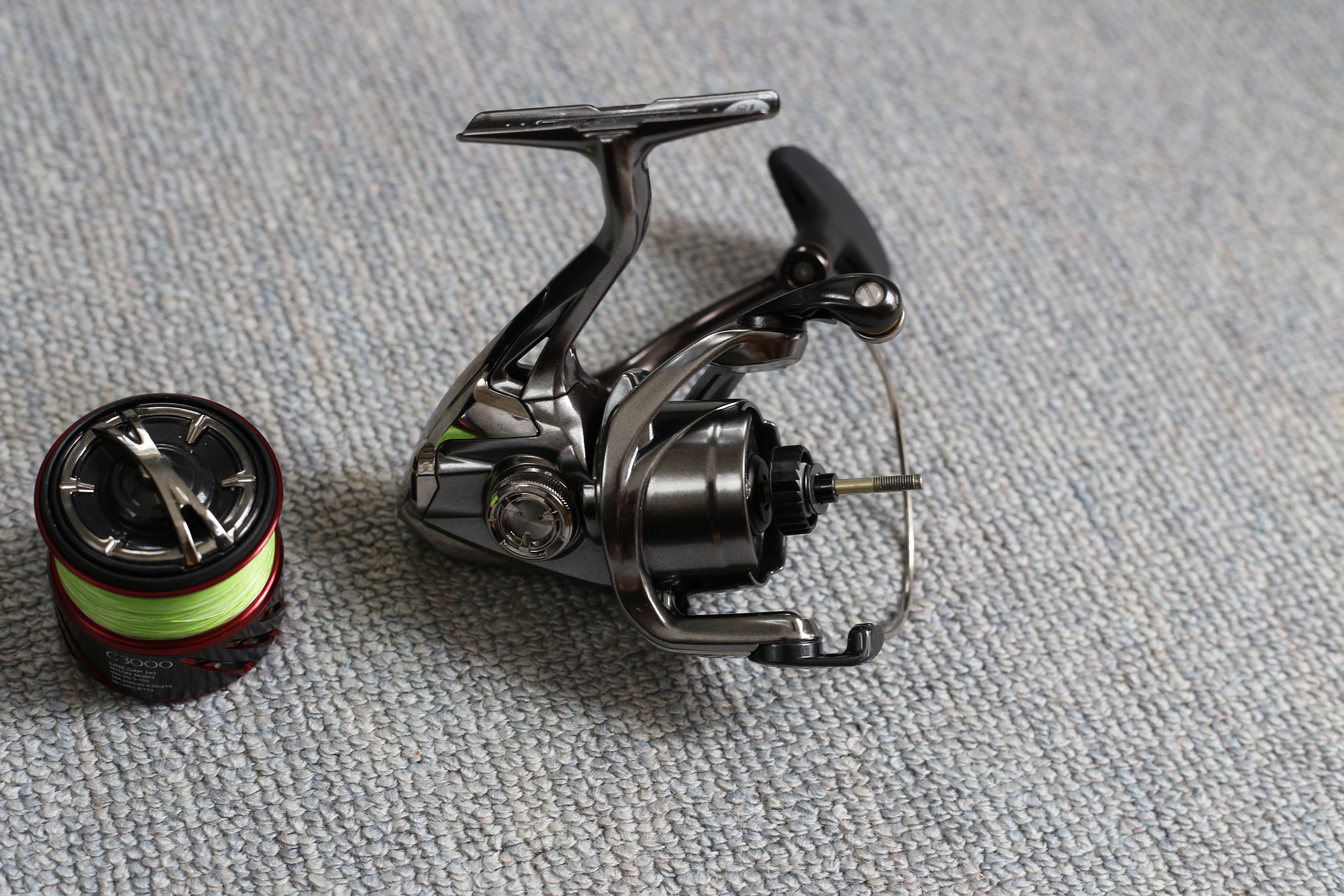 赤を随所に入れたデザインは好みが別れる部分ではあるがスプールとドラグノブを変更すればほぼ赤い部分が無くなる。スプールはシマノの夢屋で購入できる。(私もC3000は深溝なのでシャロースプールを買おうと思っている)