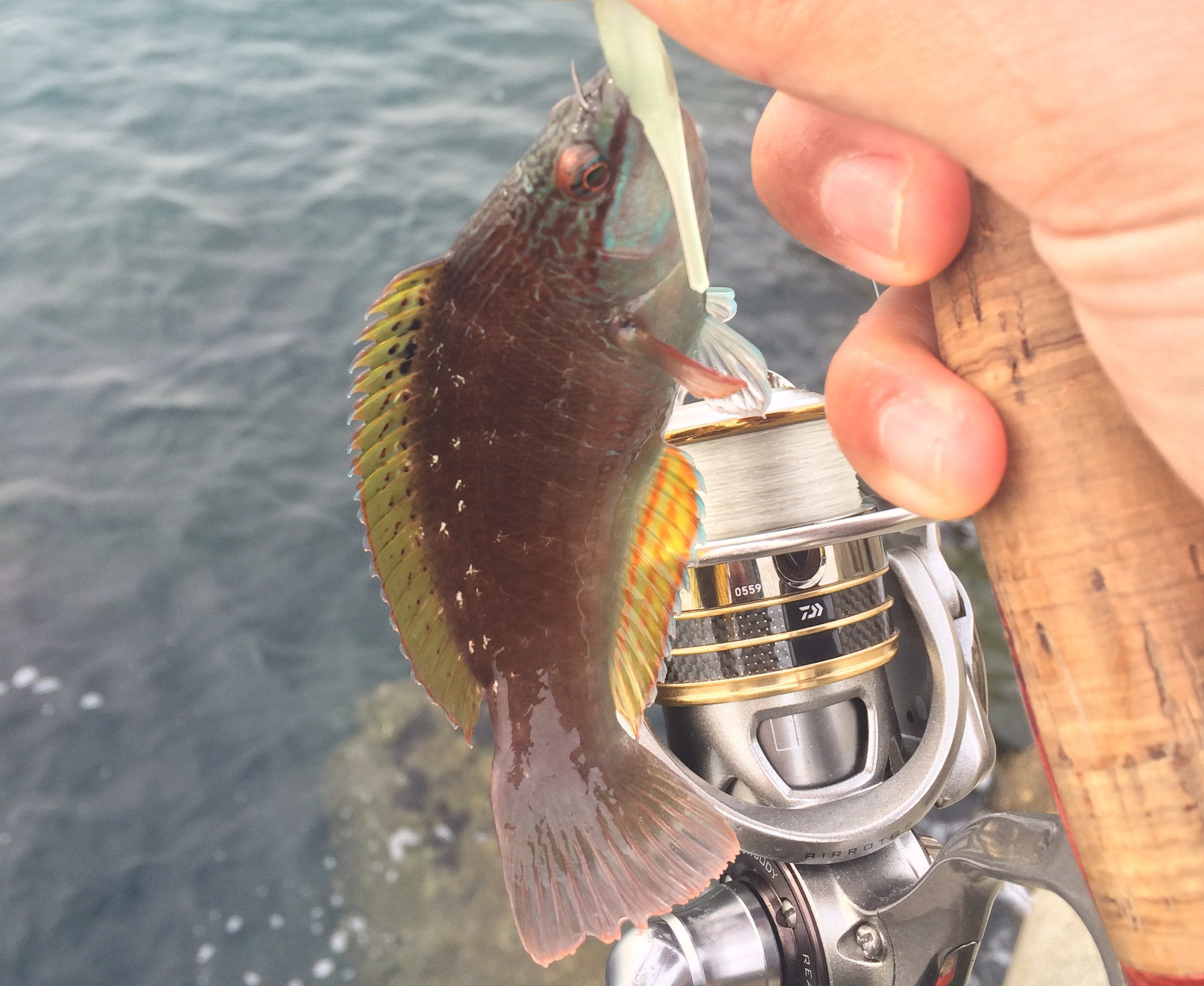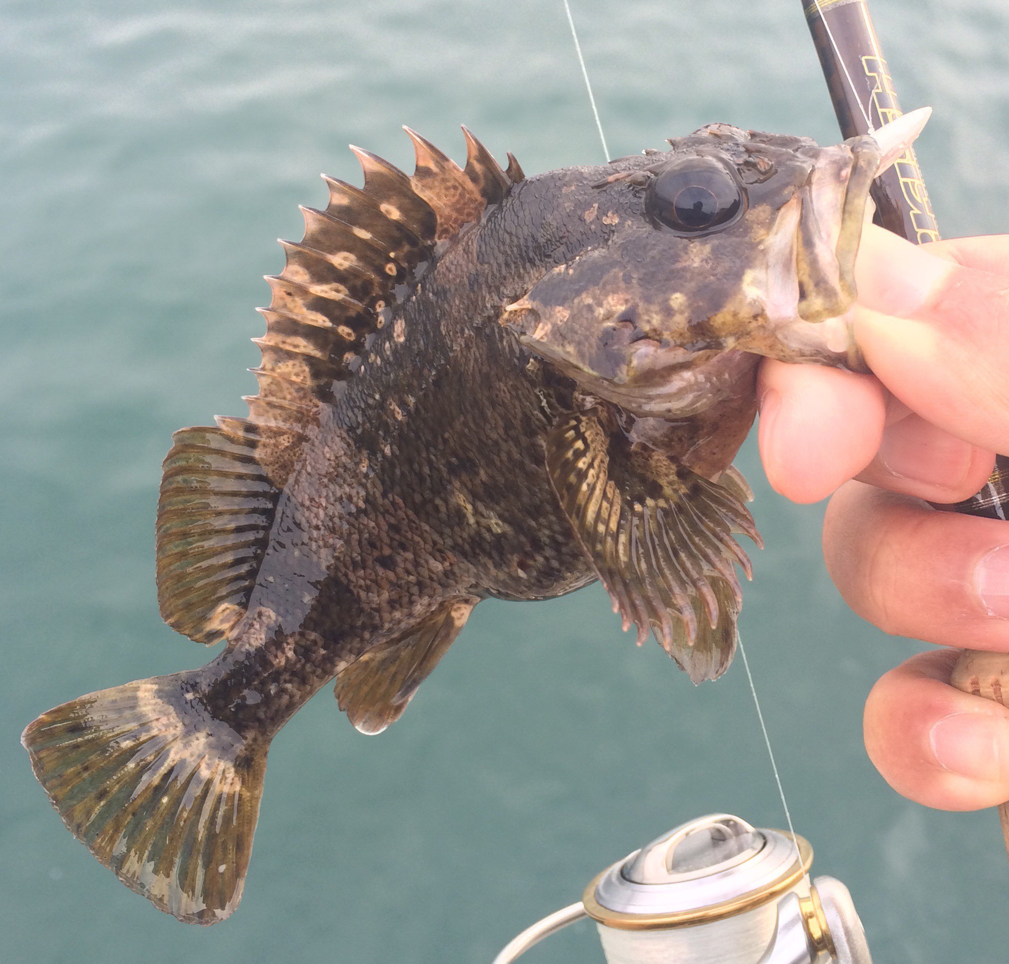 穴釣りにしてはまあまあサイズのクジメ。こういうのが釣れると楽しいw