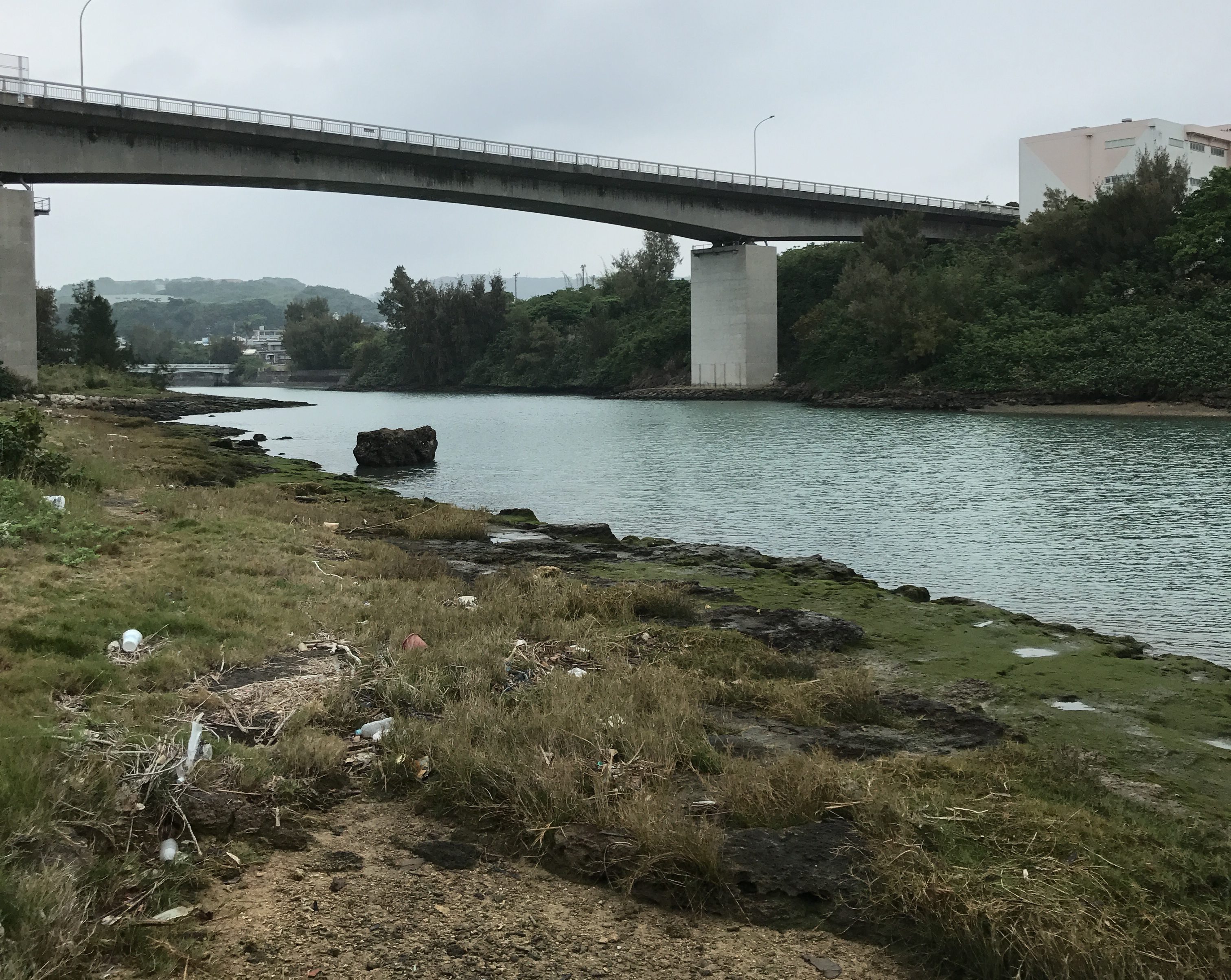川の河口が1番魚影濃い説に基づき那覇近くの大きめの川へ行ってみる。