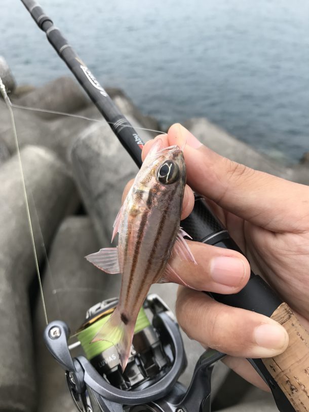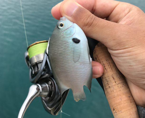 仕掛けを落とすとめっちゃ色んな魚が寄ってくる。ただ、普通にエサ取りめっちゃ上手い。なんなん?エサ取り名人のカワハギより確実に餌取り上手いよ?この熱帯魚。