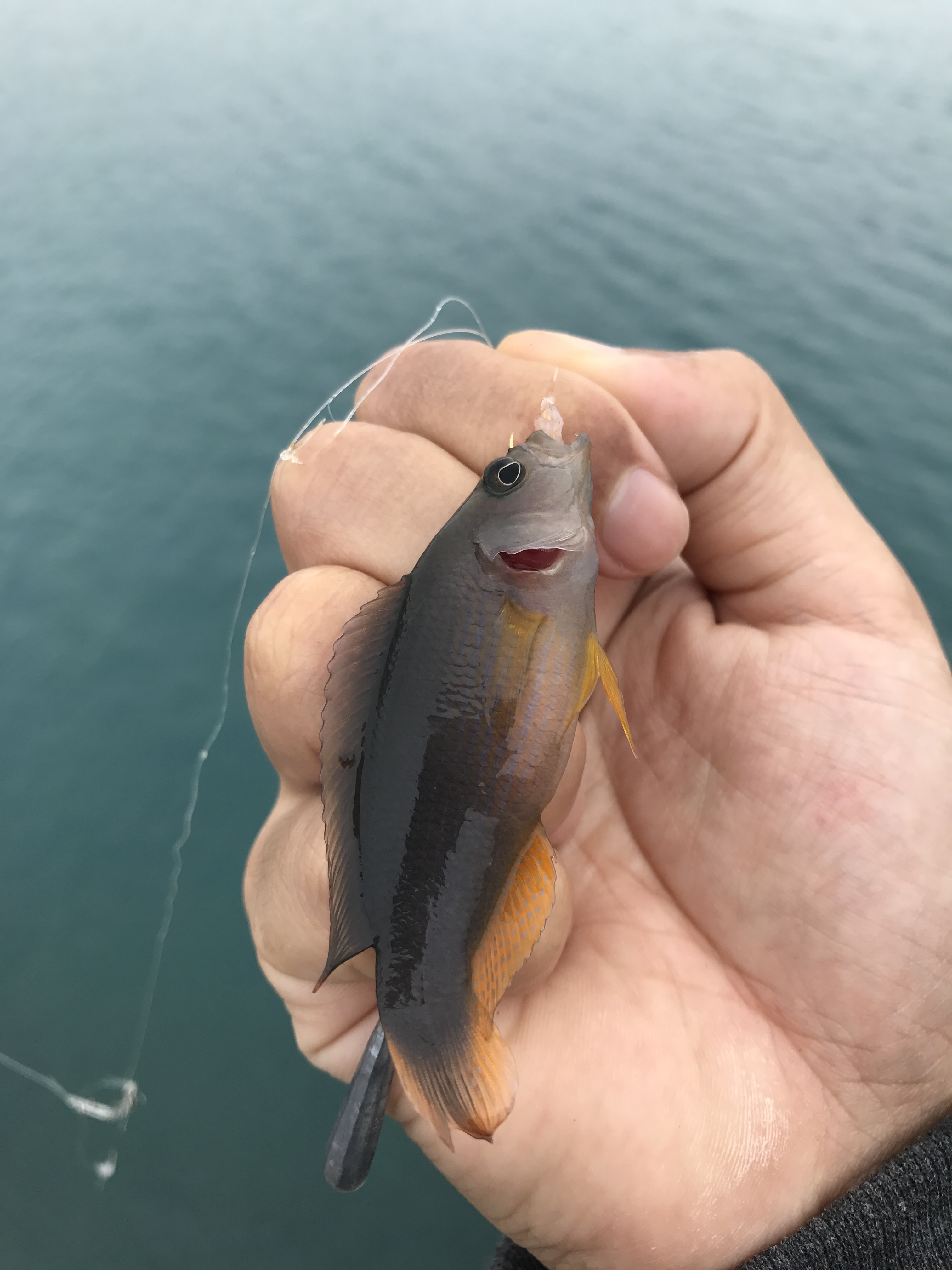 沖縄はフグすら簡単ではなく頑張って「なんか釣れろ!」と投げ続けていたらやっとスズメダイみたいなのが釣れた。エサですらこの難易度である・・・。