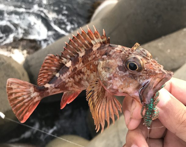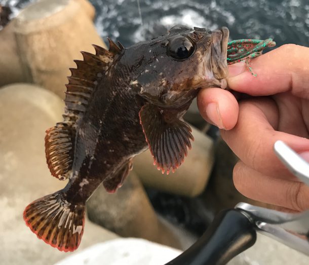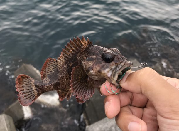 なんとなく釣れなそうに感じたため坊主回避のために根魚狙いに切り替える。
