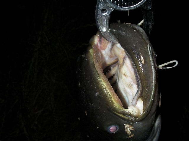 このエリアは水底にウィードが繁茂しているので琵琶湖流の夜釣りスタイルスタッガーのテキサス巻き巻きをやると面白そうだがそれはまた今度別の機会にすることにしてマイポイントへ移動。