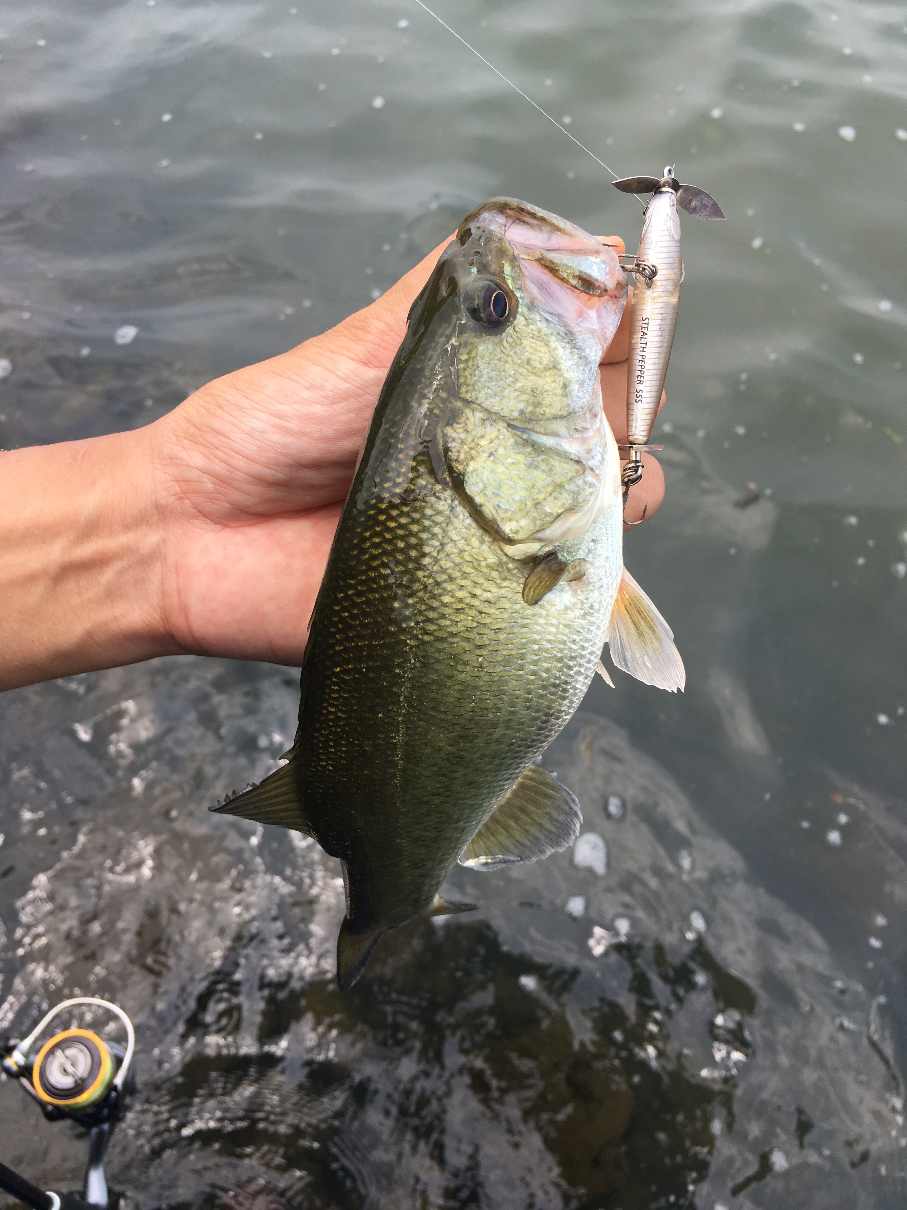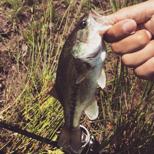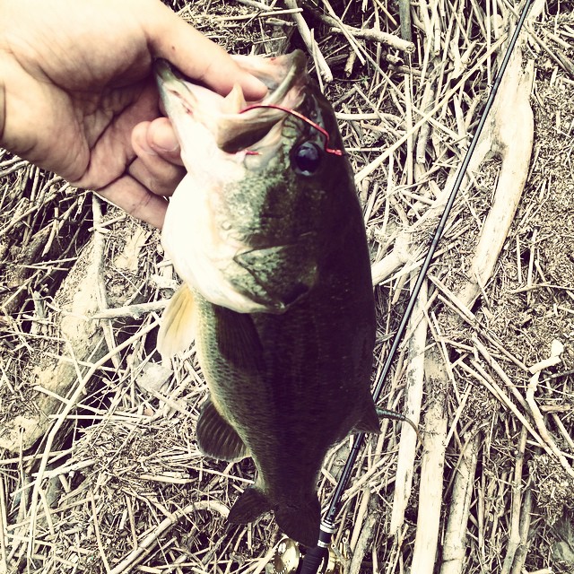足元のかけあがりには小バスがたくさんいるので手っ取り早く釣りたいならそういう小バスをノーシンカーワームで狙うのが良い。
