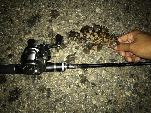 更に同じポイントで大きめのタケノコメバルゲット!!!これだけ連発すると楽しすぎる。これはクーラーボックスにキープして釣りを続ける。