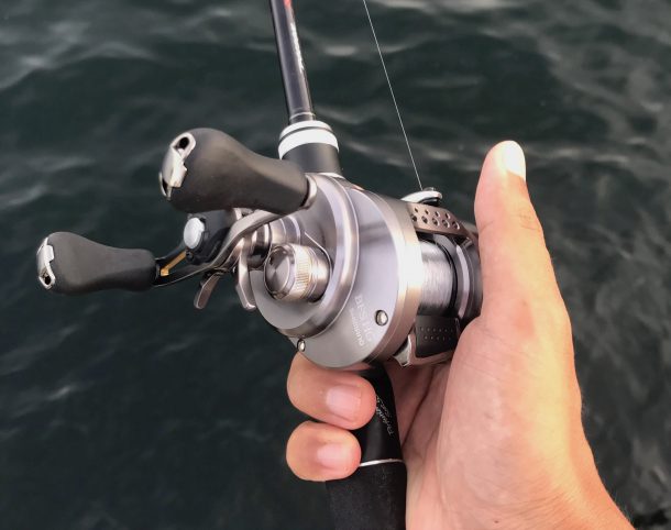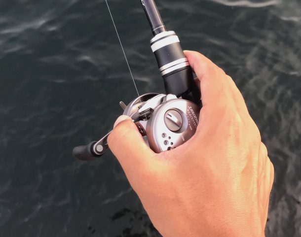 全然ダメというわけではないが、リールの大きさも高さがある分パーミングのしやすさは落ちる。パーミングがしにくいということはアタリが取りづらいということ。アタリの取りやすさにおいては2重でハンデを背負っているといえる。