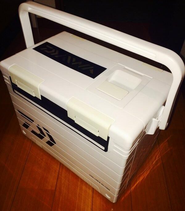 12リットルタイプで上に小窓があるタイプ。もちろん蓋は両開きで取り外せる。保冷力もウレタン断熱で軽くて十分な機能となっている。内寸で幅31センチあり尺アジでもギリ収容可能。