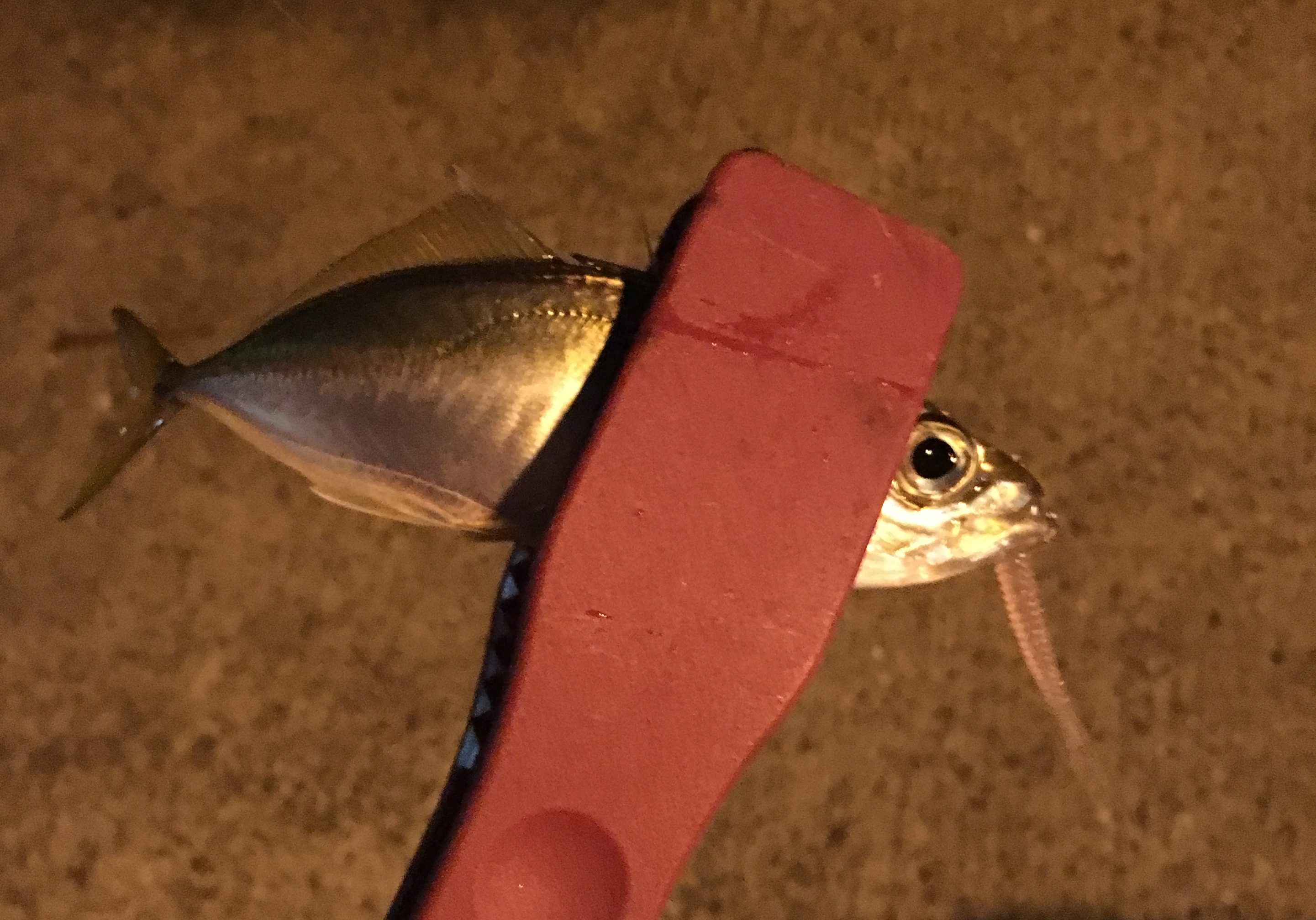 こういうところだと大体、夜間はライトが点灯しており、そのライトに集まるプランクトンを求めてアジが集結する。なので手っ取り早くアジを釣ろうと思うとこういうところが一番いいポイントとなる。