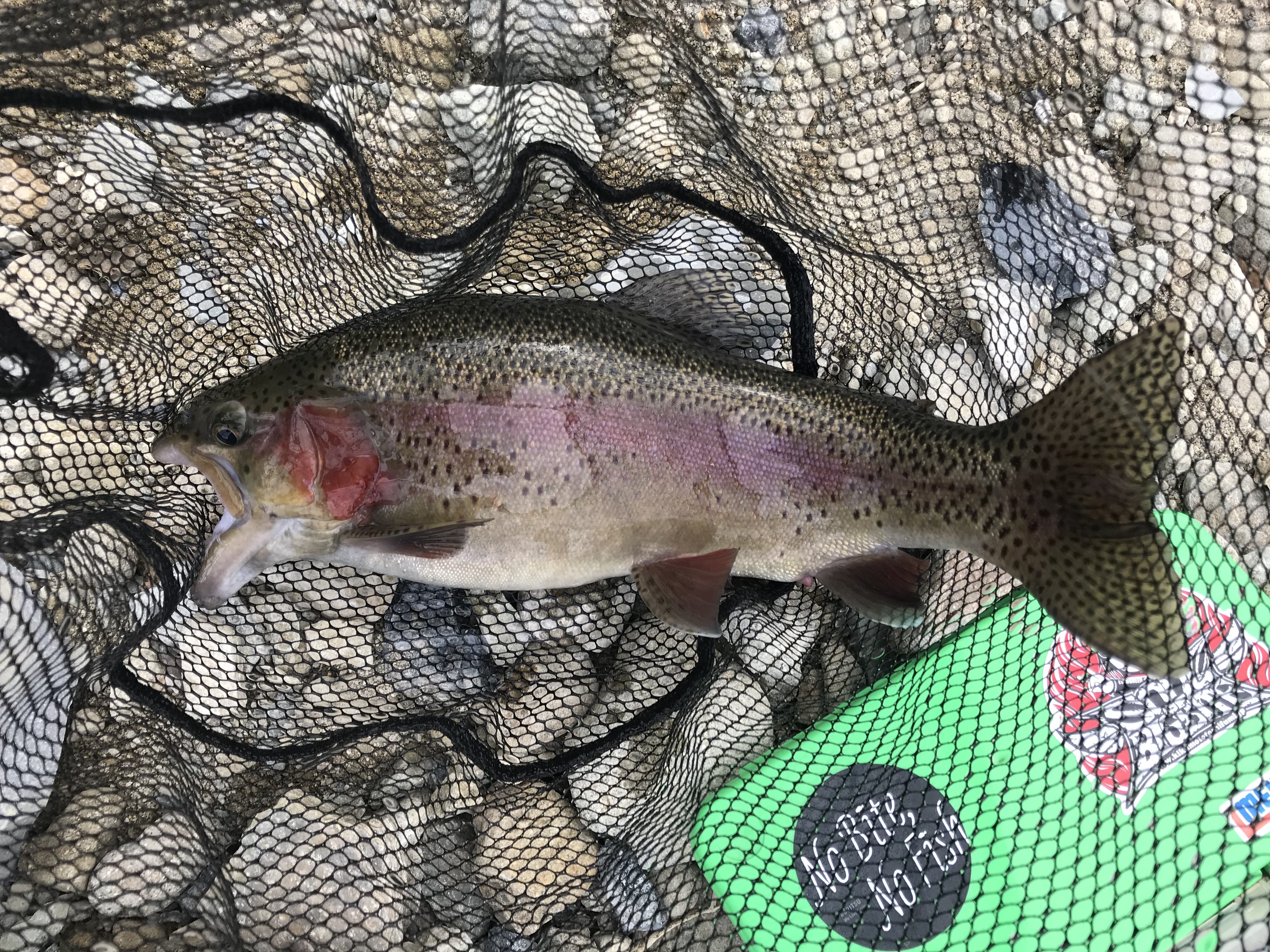 北田原でデカイにじます釣ったった