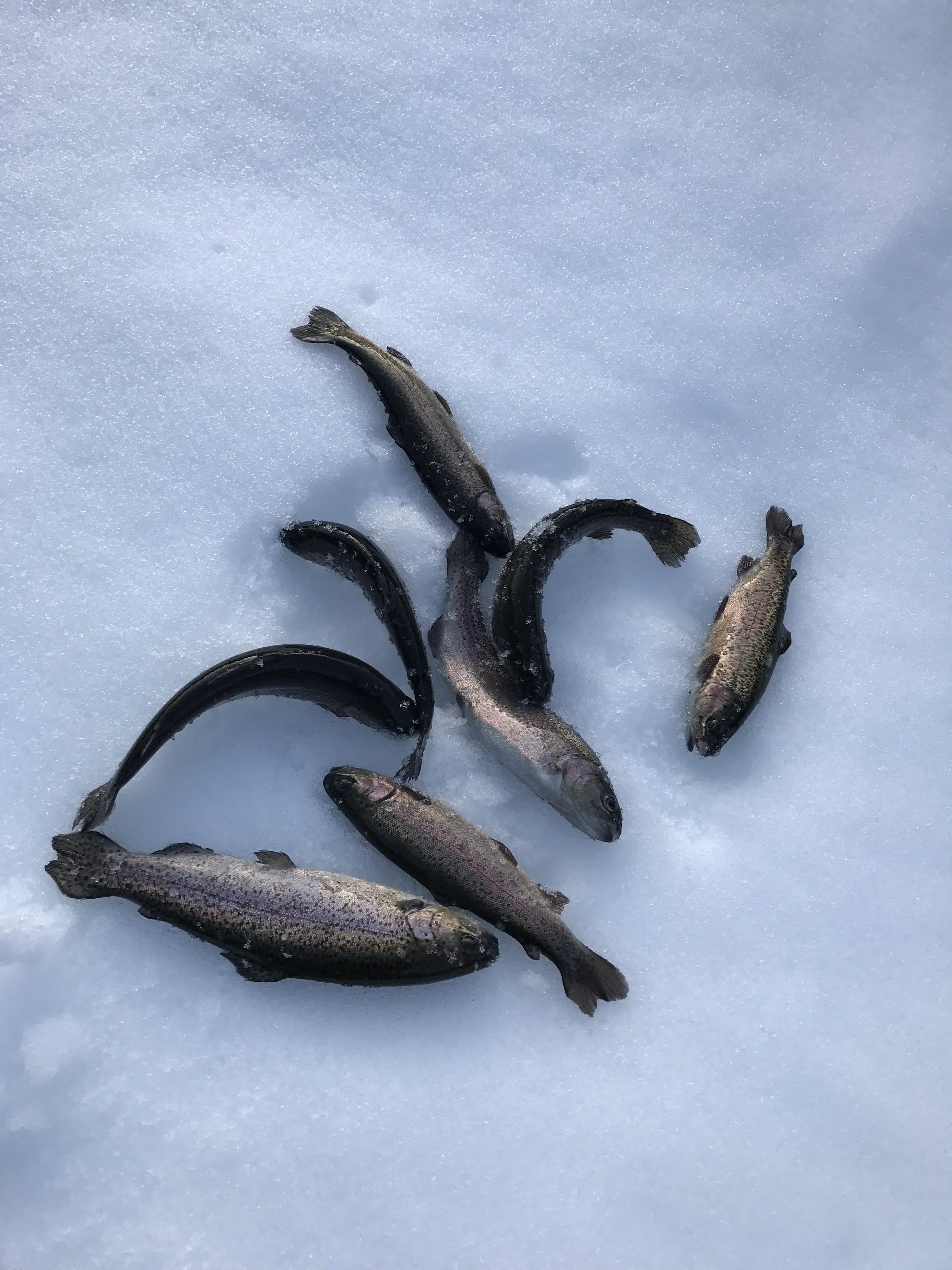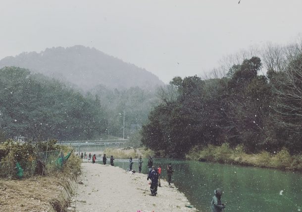 雪の北田原マス釣り場、極寒の釣りでニジマスゲット!
