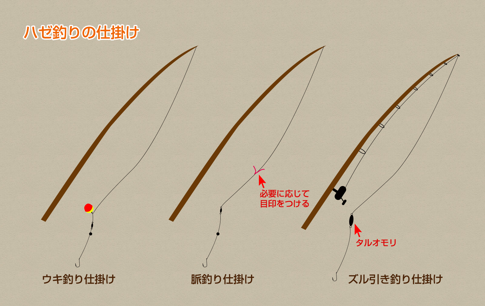 脈釣りはウキは使わず目印を使ったりしてハゼを釣る仕掛け。