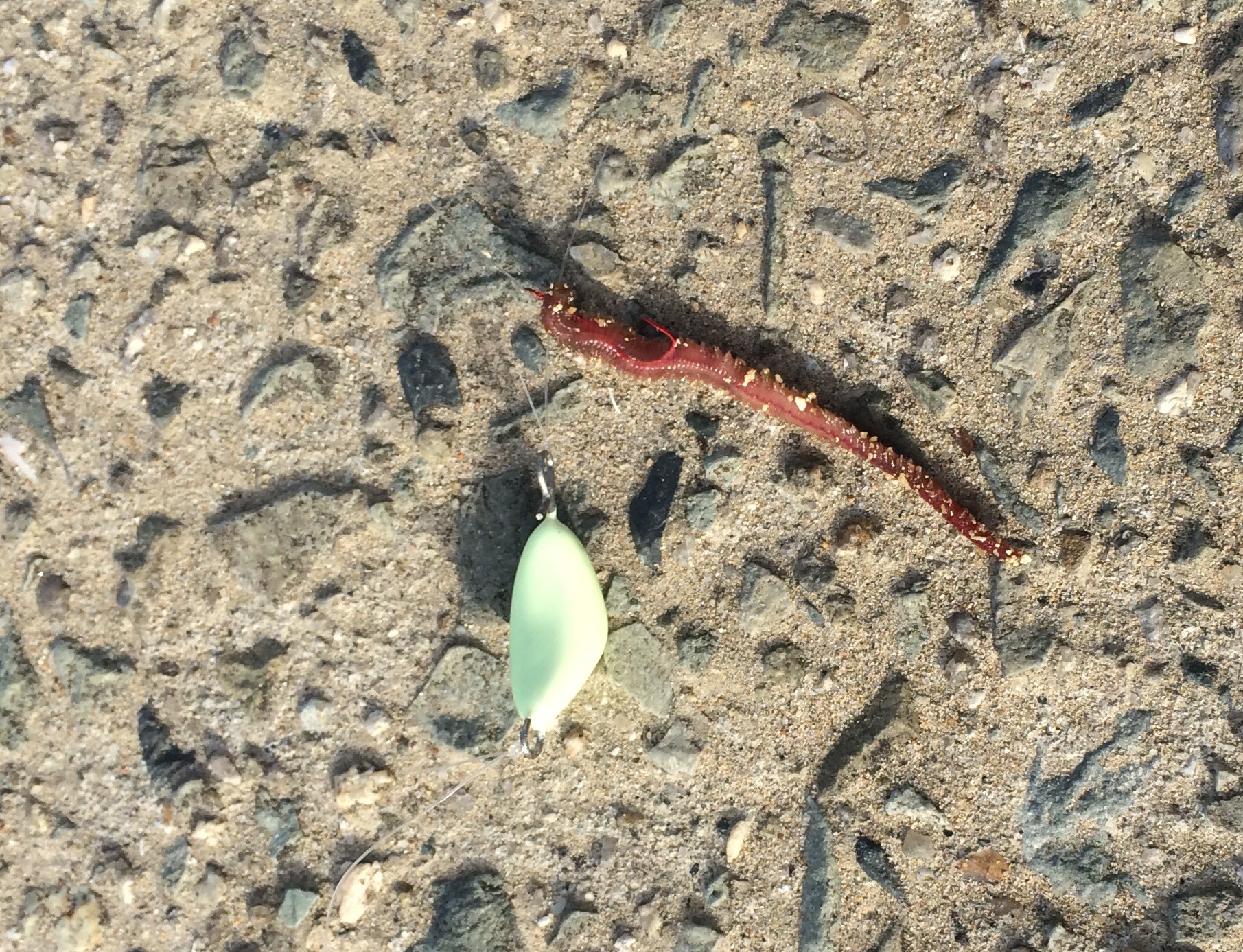 キスなどの小さな魚を狙いたい時は青イソメだと大きすぎるので石ゴカイ(ジャリメ)を使う。