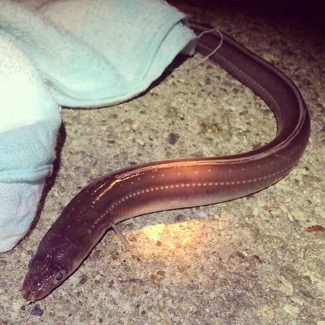 夜釣りなら穴子も簡単に釣れる。