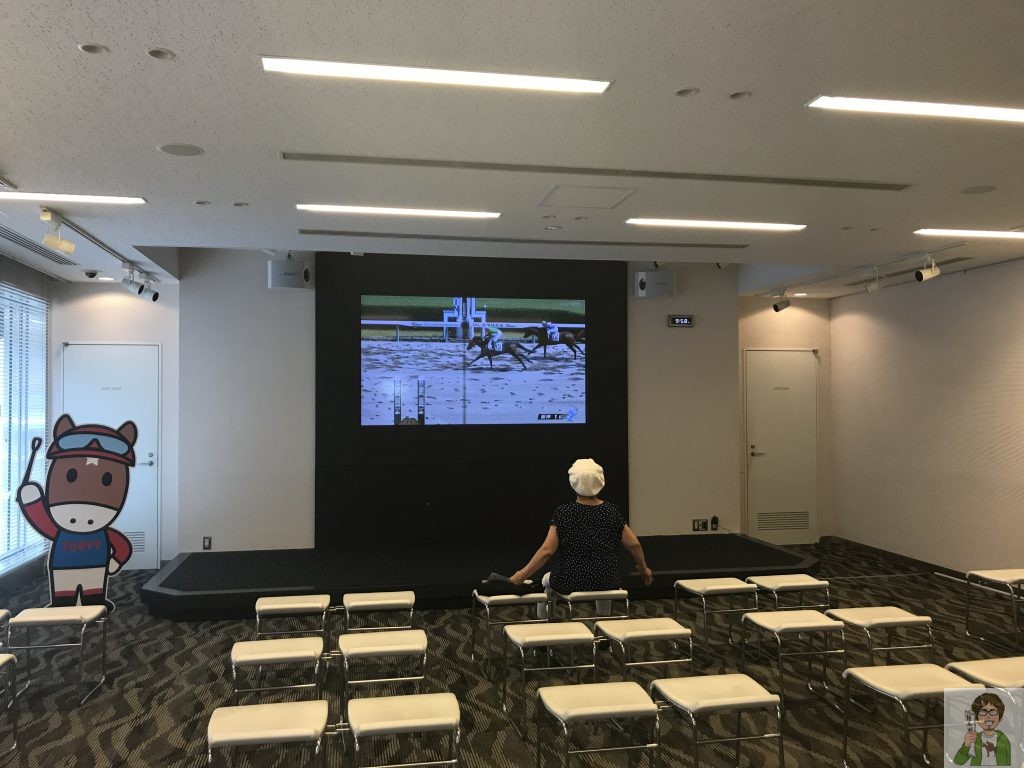 WINSにあるのと同じようなでかい画面で見ることが出来て迫力がある。ホールの方でイベントがなければスクリーンに投影された映像をゆっくり見ることも出来てとても快適な施設になっている。ただ、一応みんな資料を読んだりしているので馬券を買って応援するような人はいない。