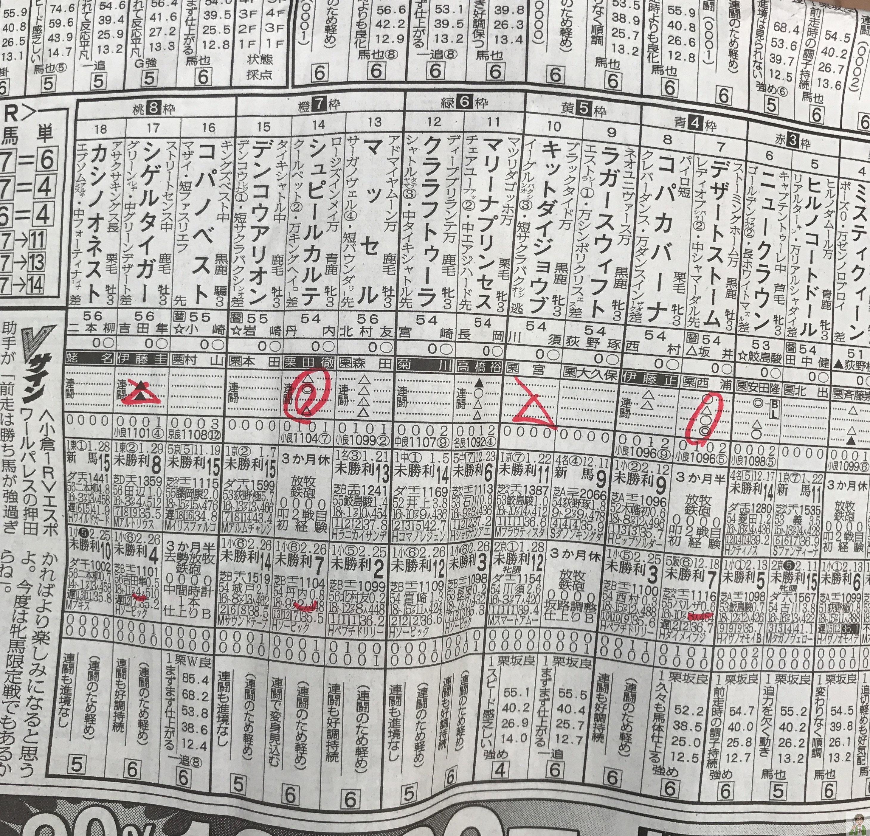 丸とか三角とかはざっと眺めるだけ。丸が多い馬はなんでそんなに丸が多いのかが重要。前レースはどういう成績であったのか?今回の調教の状況はどうなのか?が大事。