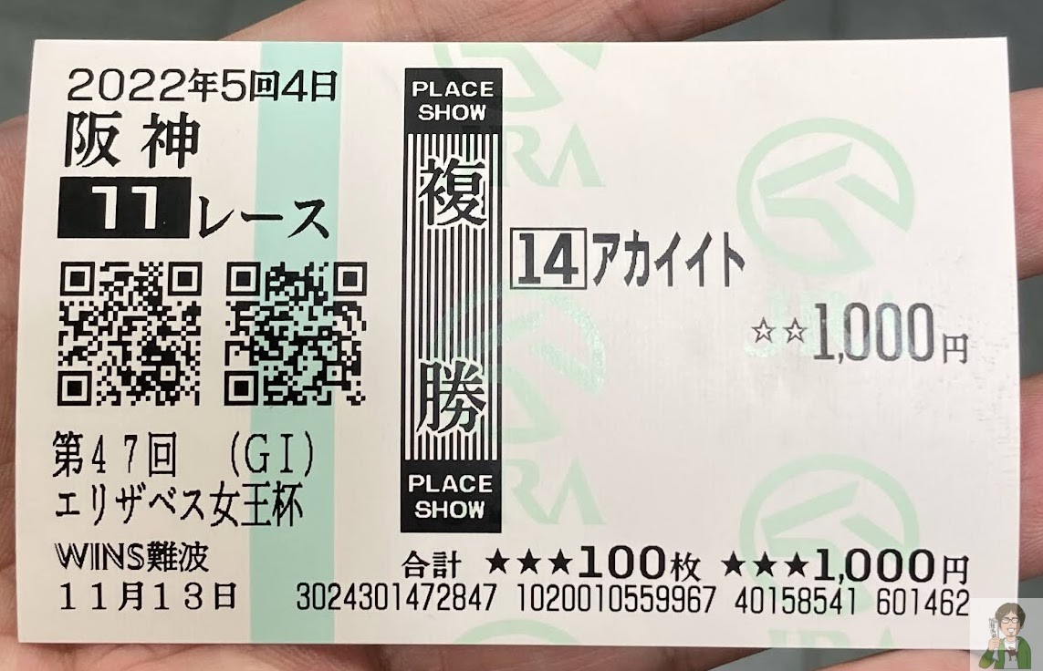 でも4着は勲章なので大丈夫。この買い方は間違っていない。単勝11番人気の人気薄で4着というのは買って正解というわけである。