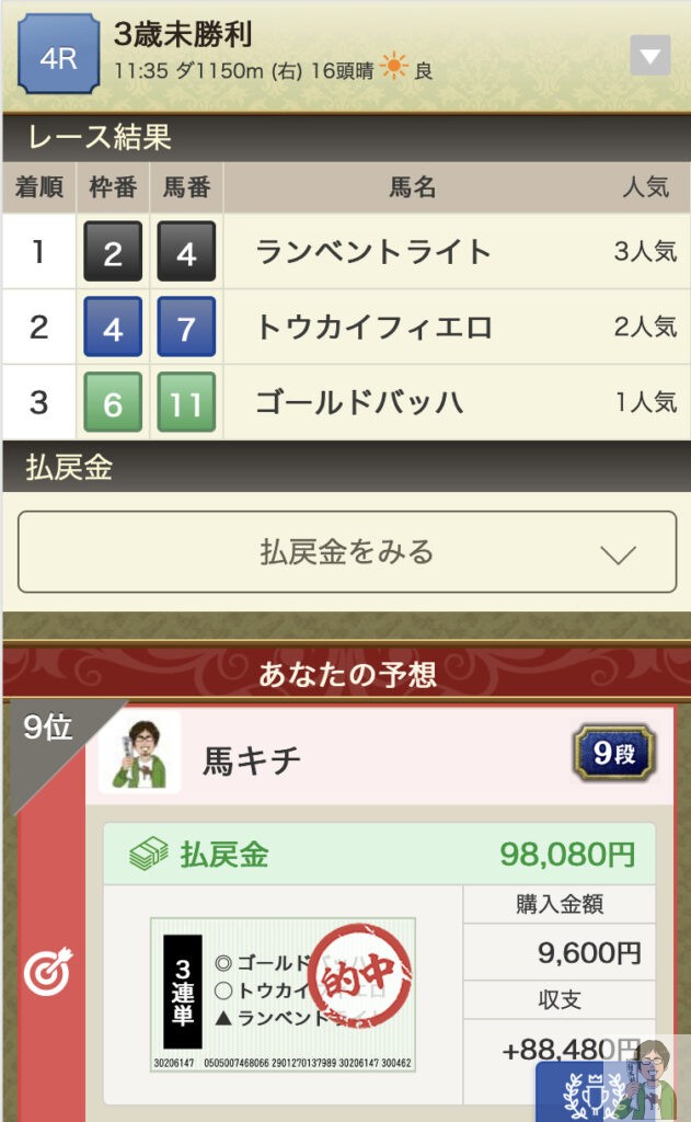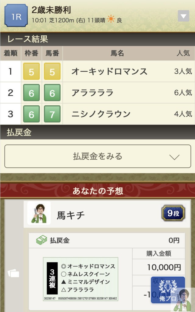 2歳未勝利という実績不足の予想が難しいレースも馬連なら取れていた…。