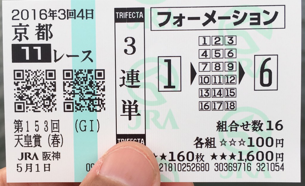 これは競馬場へ行って普通に買える馬券である。