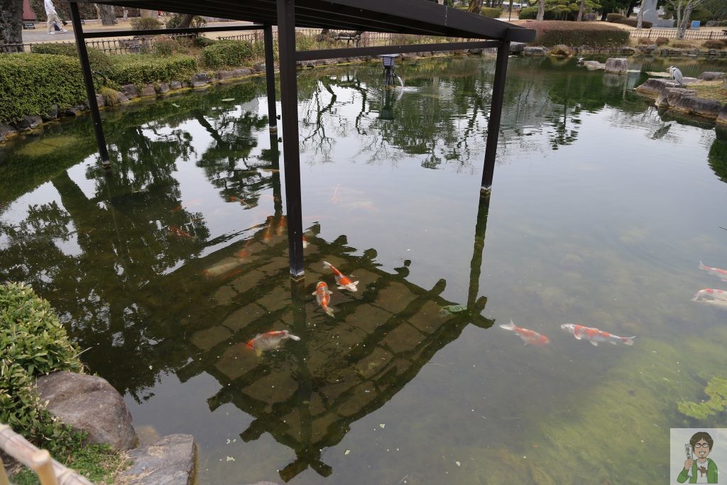 設備を見て回って驚いたのが日本庭園に錦鯉がたくさんいること。