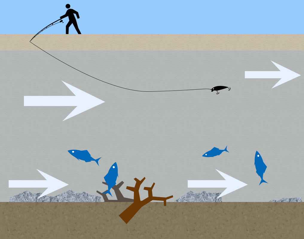 このパターンの場合は上流から流されてきた鮎のようにゆっくりとほとんど泳がせずに巻いてくるのがよい。極端な話だが浮かせて流してるだけでも釣れる。