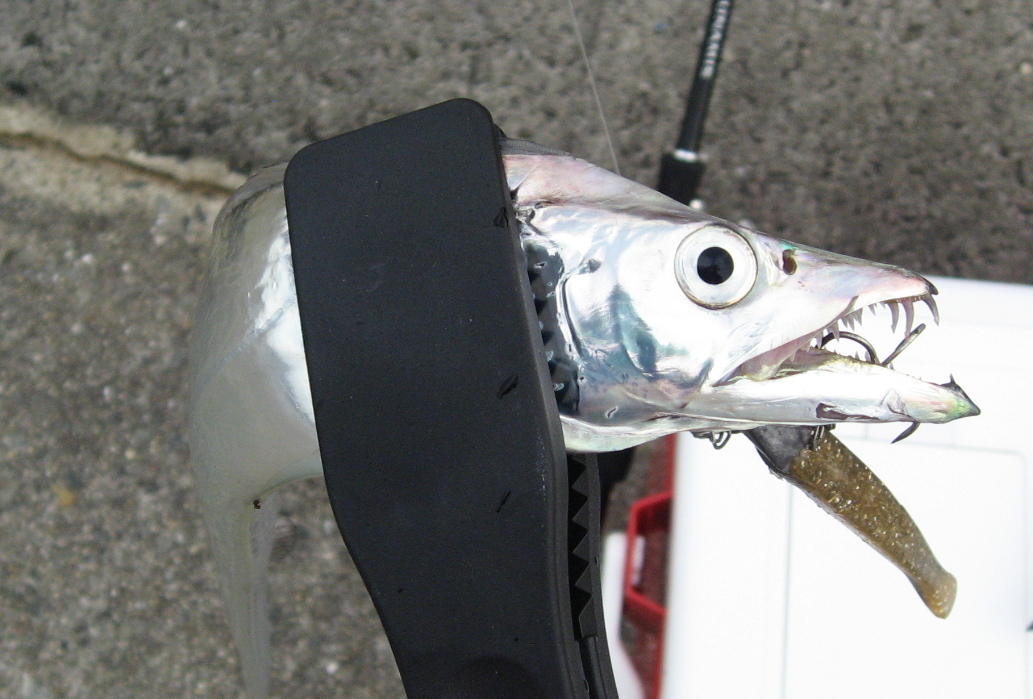 あと、タチウオを素早く締めると暴れまわらないで針がはずしやすくなるので首元を魚つかみは抑え込み、首の部分の背骨をプライヤーでへし折るのが普通なのだが小さなプライヤーだと中々締めることができなくてまた手間がかかることになりかねない・・・。