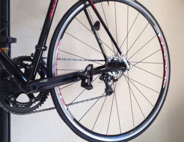 片足でもまわすことの出来るビンディングペダルだが、両足の固定が解除されると全くこげなくなる。こげないと困るときがあるので右足は完全に止まってから外した方がいい。